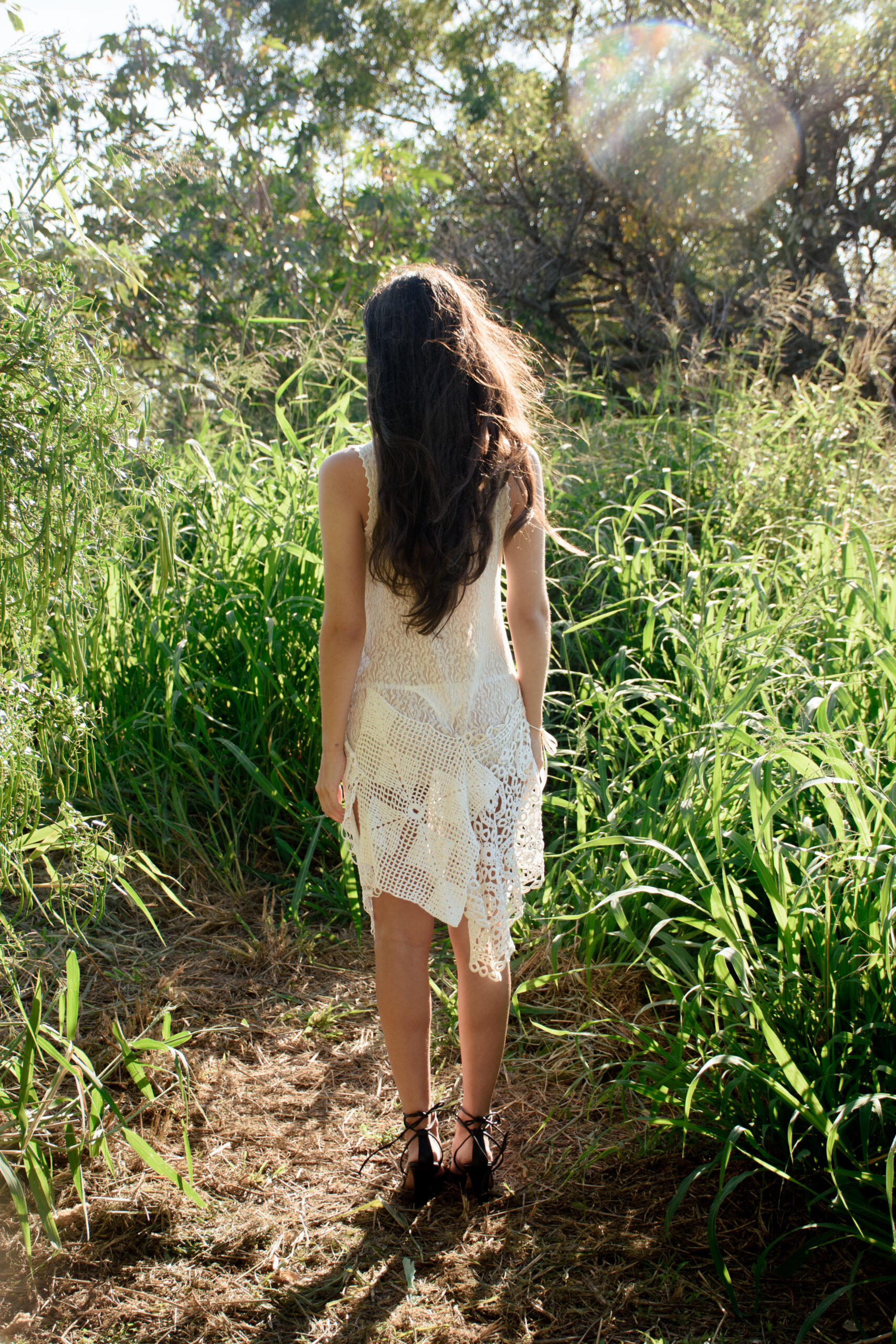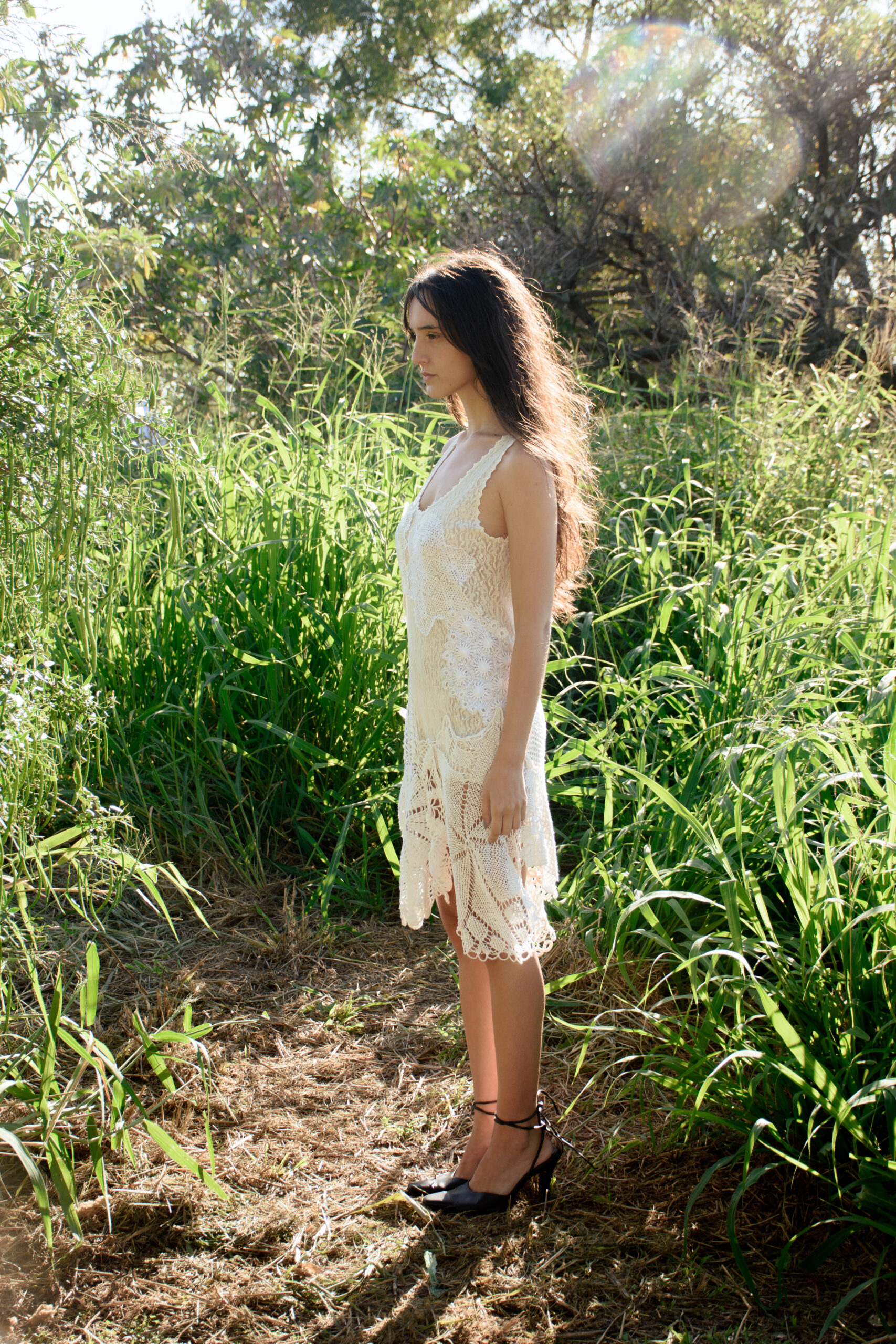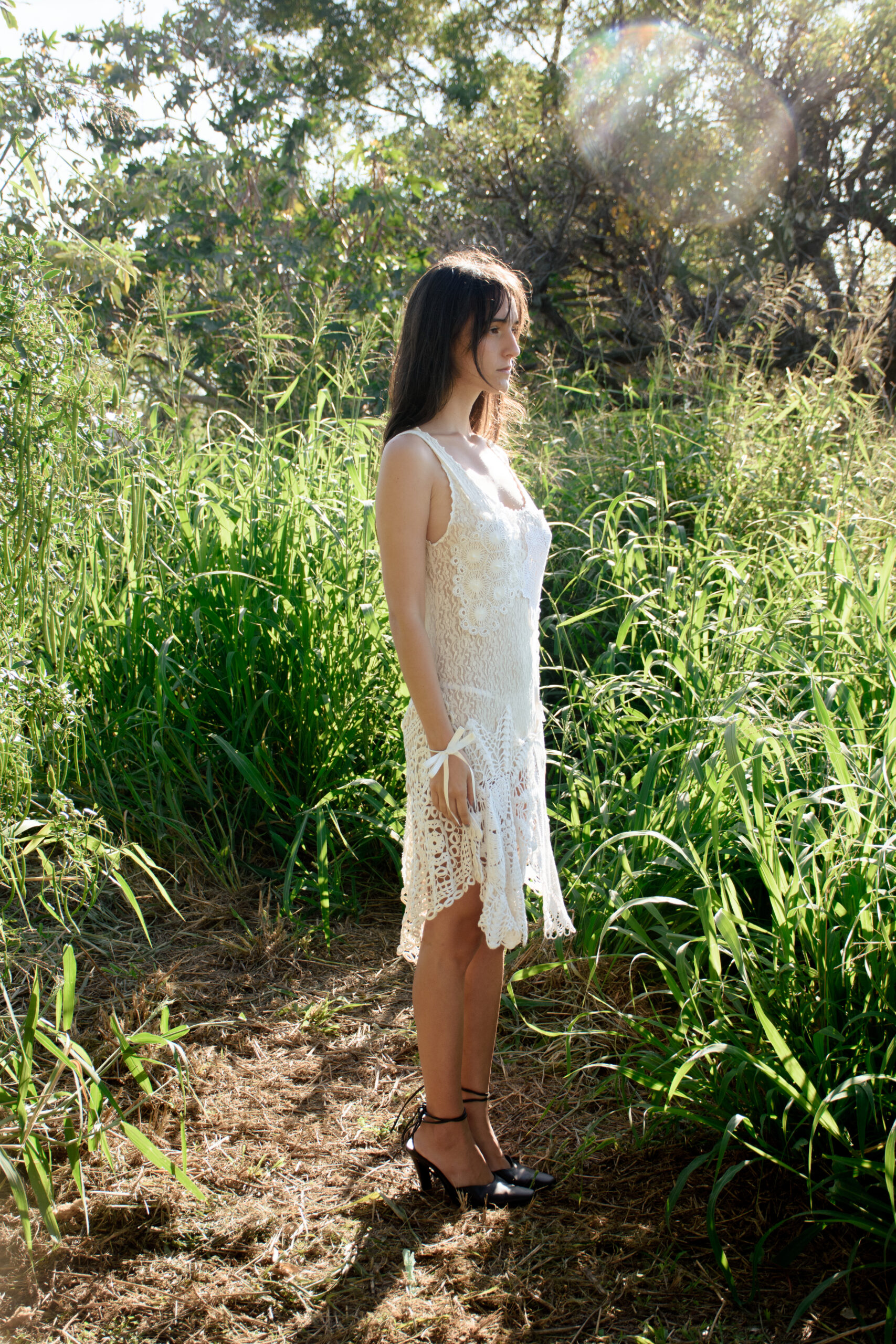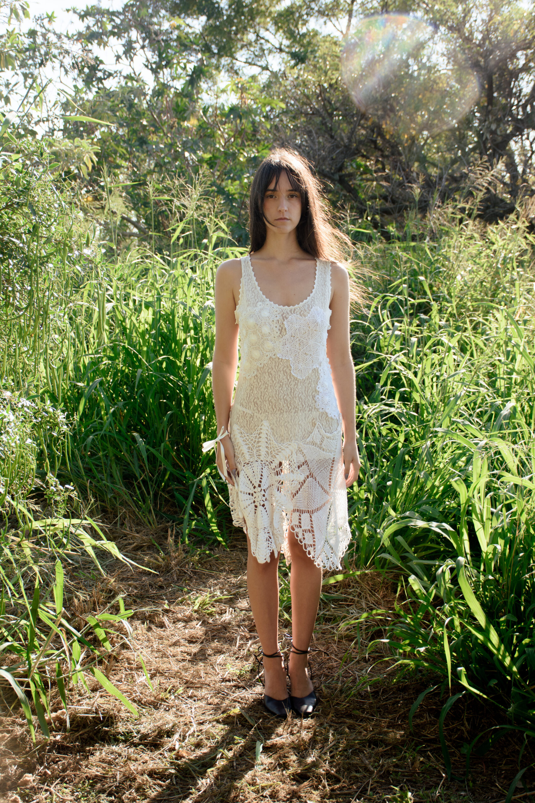 This dress is handmade from recycled vintage table linens, carefully transformed into a one-of-a-kind piece.